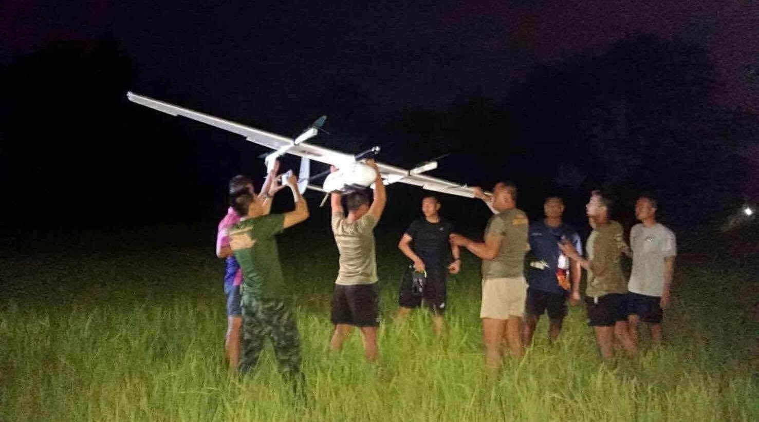 ภาพเจ้าหน้าที่ลงจอดโดรนฉุกเฉิน เมื่อคืนวันที่ 3 สิงหาคม 2568 ที่จังหวัดสุรินทร์