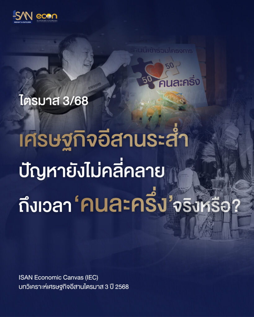 เศรษฐกิจอีสานไตรมาส 3/2568 กำลังเผชิญแรงกดดันรอบด้าน ทั้งภาษีสหรัฐฯ ที่ปรับขึ้น ปัญหาชายแดนไทย–กัมพูชาที่กระทบการค้า ไปจนถึงการเมืองในประเทศที่ยังไม่มั่นคง ส่งผลให้การจับจ่ายซบเซาและการลงทุนชะลอตัว ท่ามกลางวิกฤต รัฐบาลใหม่ของนายอนุทิน ชาญวีรกูล เสนอ “คนละครึ่งพลัส” เพื่อพยุงกำลังซื้อ แต่ก็เกิดคำถามตามมาว่า มาตรการนี้ยังเหมาะสมจริงหรือไม่?