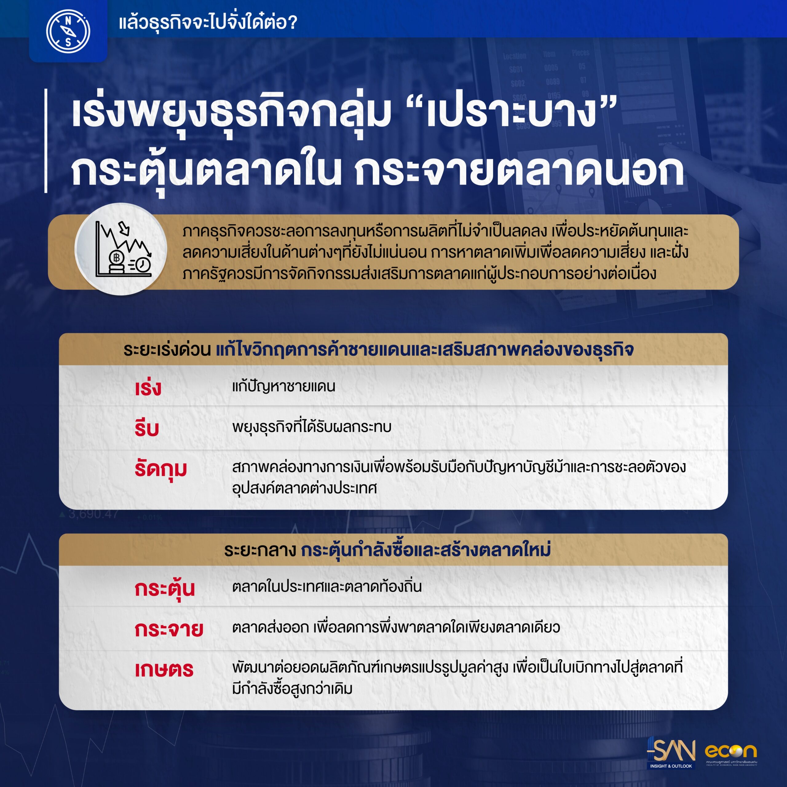 “เร่งพยุงธุรกิจกลุ่ม “เปราะบาง” กระตุ้นตลาดใน กระจายตลาดนอก”