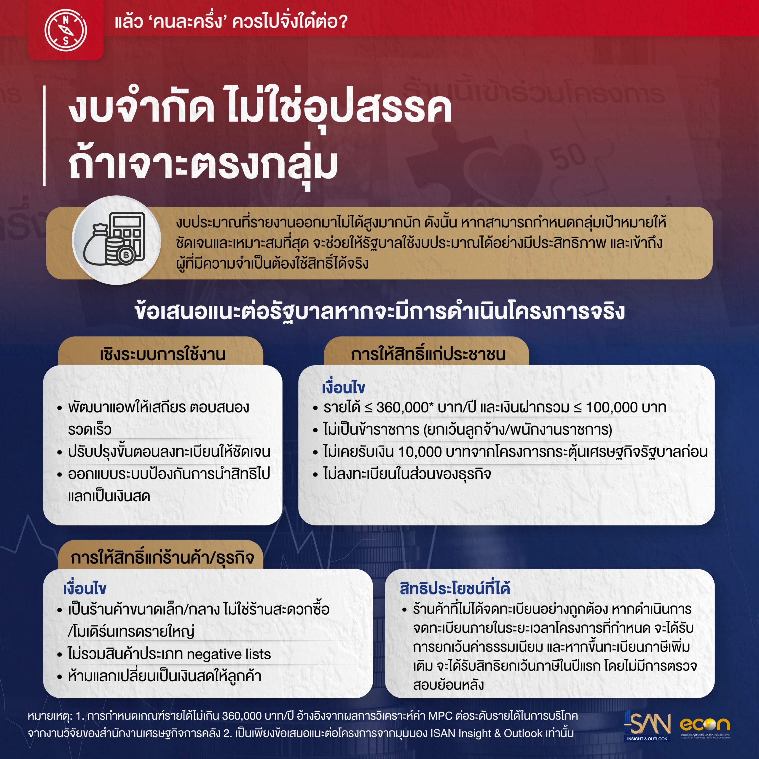 ในมุมมองของ ISAN Insight & Outlook ได้เสนอแนวทางเพื่อให้งบอัดฉีดเกิดประสิทธิผลมากที่สุด ดังนี้: