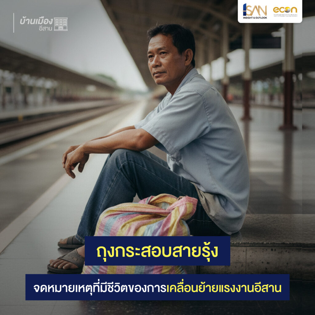 ภาพจำของถุงกระสอบสายรุ้งถูกผูกโยงกับโครงสร้างการเคลื่อนย้ายแรงงานอย่างเหนียวแน่น ข้อมูลจากธนาคารแห่งประเทศไทยระบุว่า ณ สิ้นปี 2563 แรงงานอีสานเคลื่อนย้ายไปทำงานนอกภูมิภาคประมาณ 3 ล้านคน ส่วนใหญ่ทำงานในภาคกลางประมาณ 2.7 ล้านคน (โดยอยู่กรุงเทพฯ 1.2 ล้านคน)