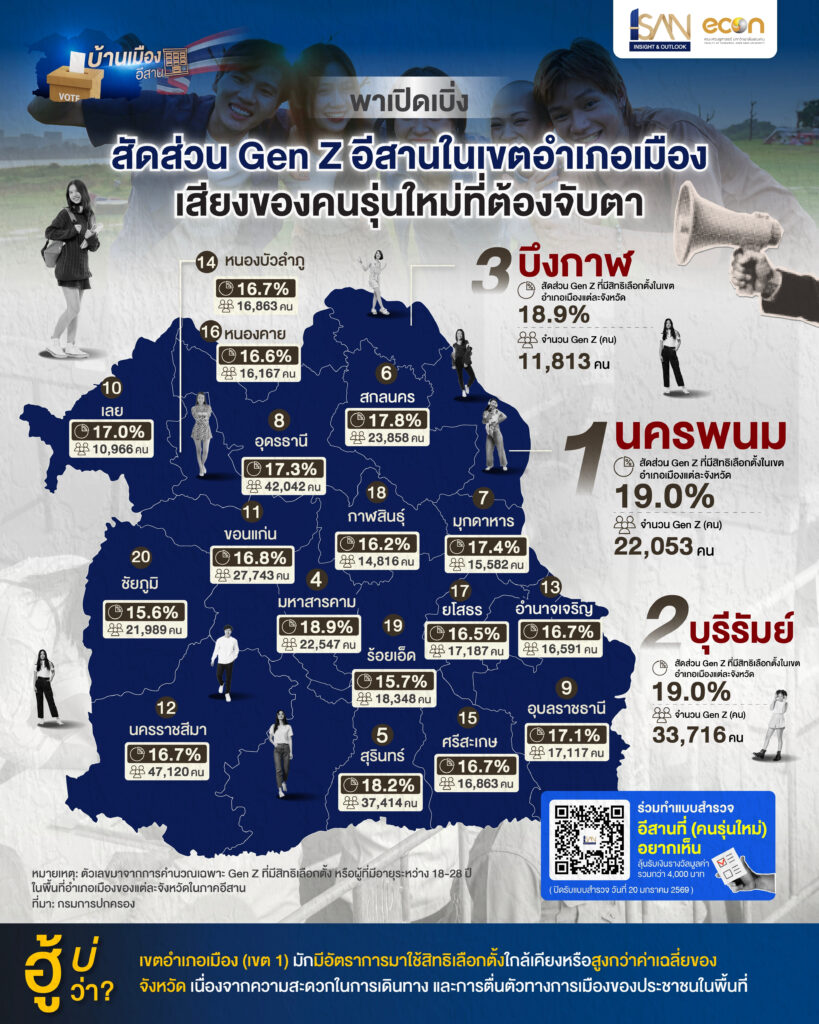 🔍 พาเปิดเบิ่ง สัดส่วน Gen Z อีสานในเขตอำเภอเมือง
