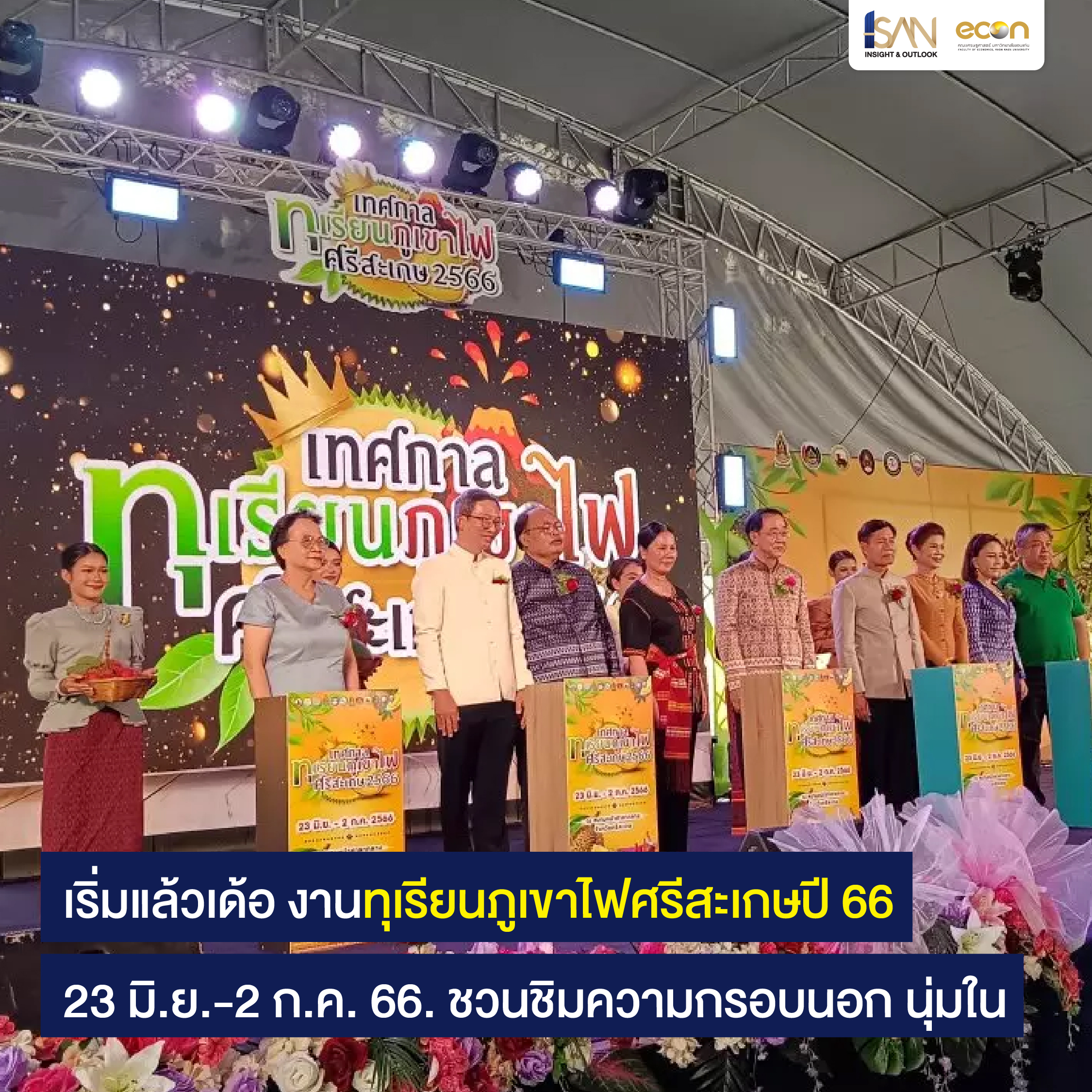 เริ่มแล้วเด้อ งานทุเรียนภูเขาไฟศรีสะเกษปี 66 23 มิ.ย.-2 ก.ค.